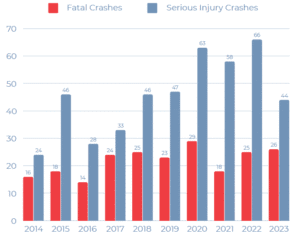 The fatal crash rate in Durham has increased since 2017. The graph below shows the reporting from the Vision Zero Action Plan.